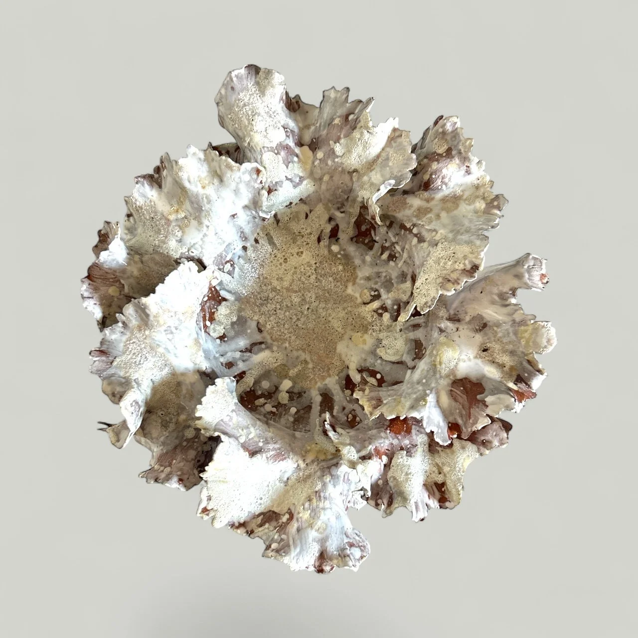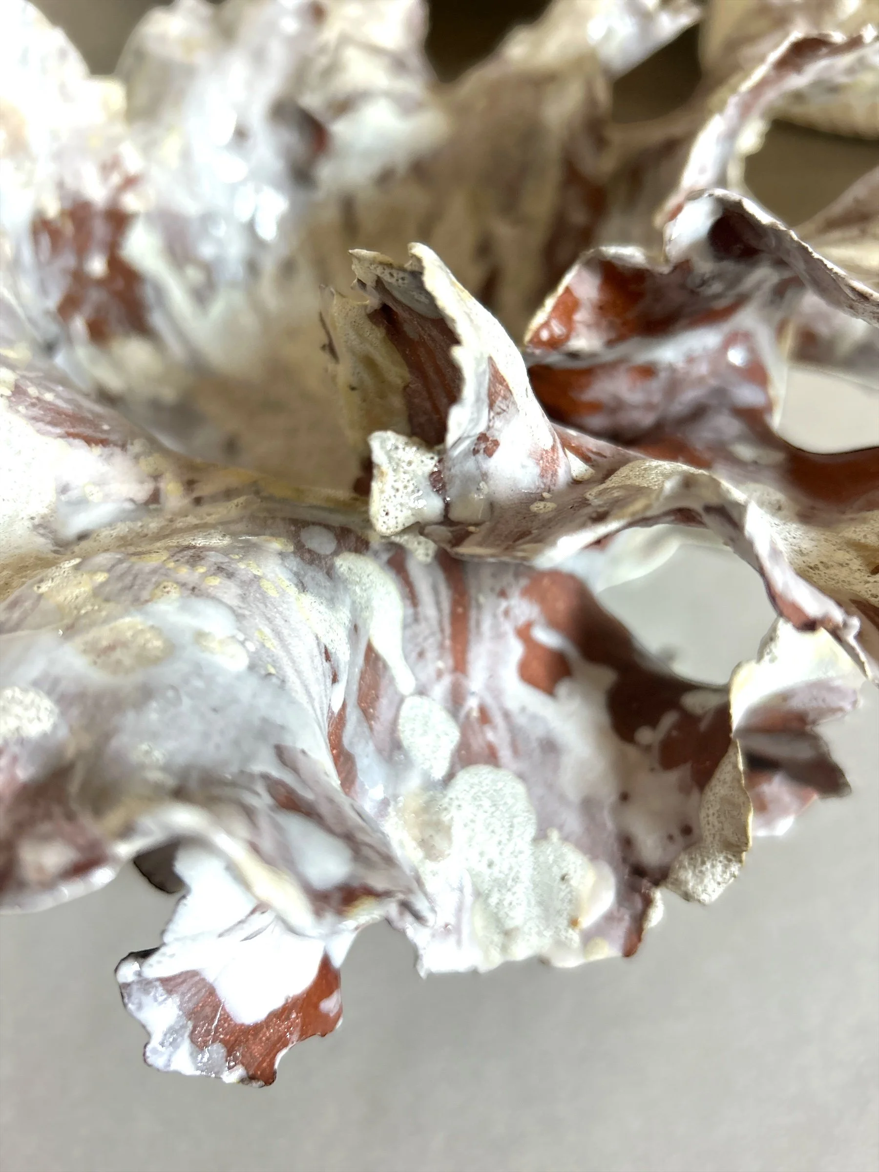 Red Brooklyn clay glazed with moon and white salt